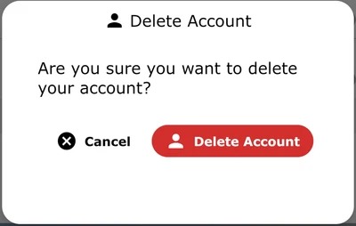 After clicking on ‘Delete Account’, you will see the below message box. If you click on ‘Cancel’, you will be navigated back to the ‘Profile’ screen.