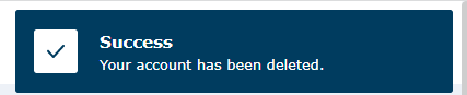 If you click on ‘Delete Account’, your account will be deleted. You will see the below message box and be navigated back to the ‘Sign In’ screen.