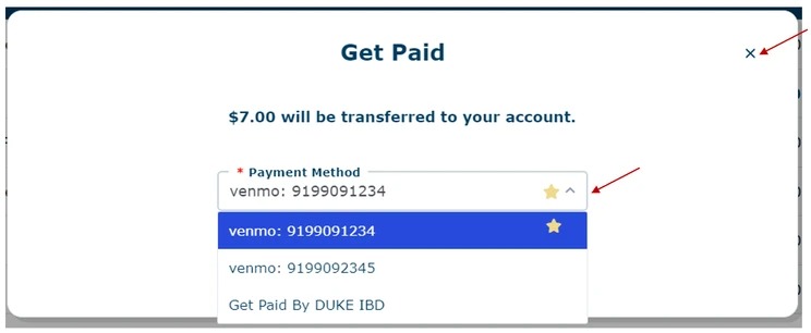 Once you have linked your Venmo account you can then click on ‘Get Paid!’ which will allow you to choose your Venmo account and transfer the money to your account. Below are examples of disbursements based on Milestones that have been completed.